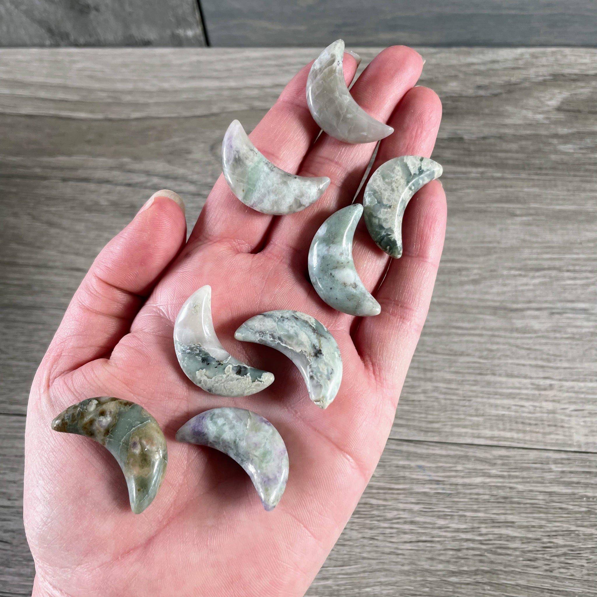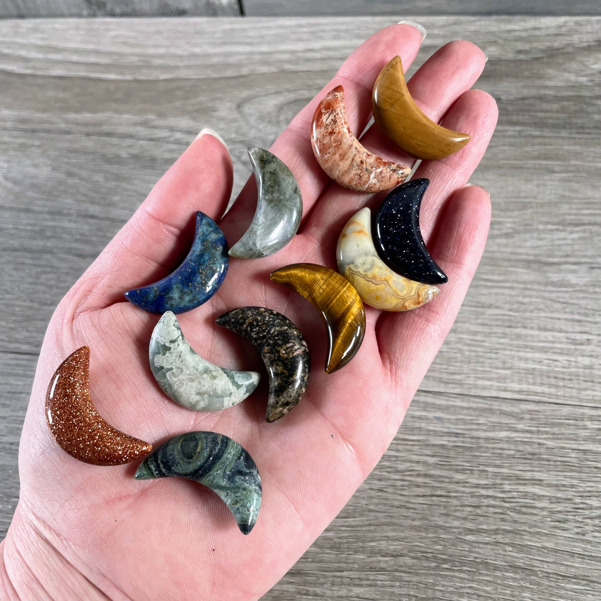 Gemstone Moons Assorted – 1 Inch Crescent Moon Carvings Assorted